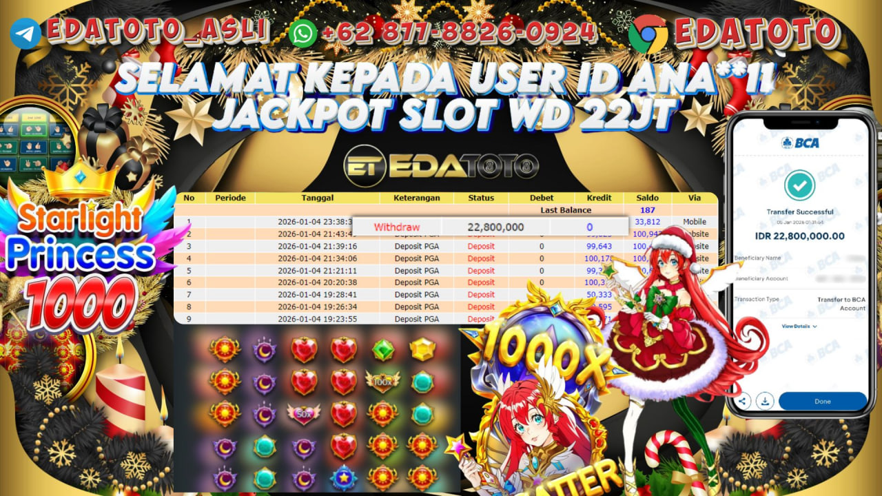 Selamat Kepada Pemilik user ID : ANA**11 Hari/Tanggal :kamis/ 4, Januari 2026 Jackpot : Rp. 22,800,000 JT Withdraw . . .