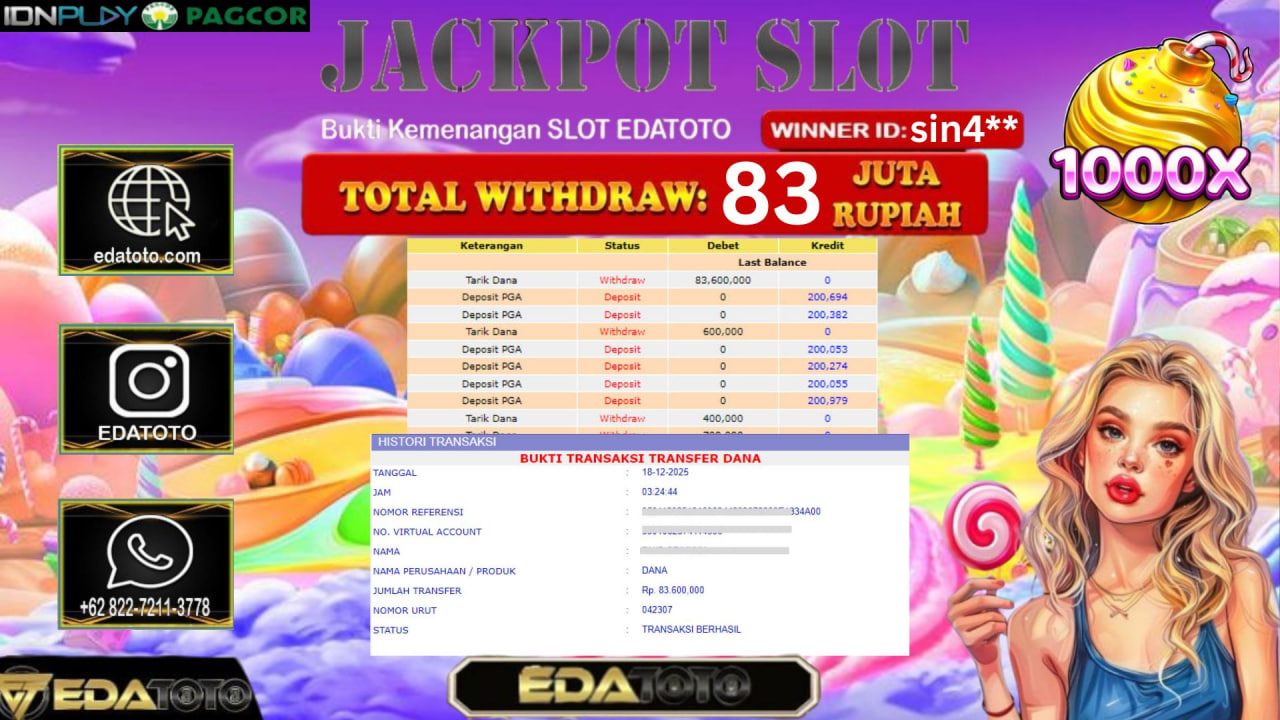 Selamat Kepada Pemilik user ID : ari**** Hari/Tanggal :kamis/ 12, Desember 2025 Jackpot : Rp. 89,000,000 JT Withdraw :89,000,000 JT . . .