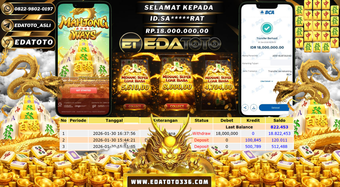 Selamat Kepada Pemilik user ID : SA***B**T Hari/Tanggal :SABTU/ 31  Januari 2026 Jackpot : Rp. 20,000,000 JT Withdraw : . . .